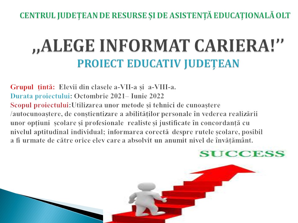 ALEGE INFORMAT CARIERA! – Proiect educativ județean